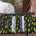 Lightning bolts Vegan, black canvas bi-fold chain wallet features pockets made with 100% cotton black and yellow fabric.