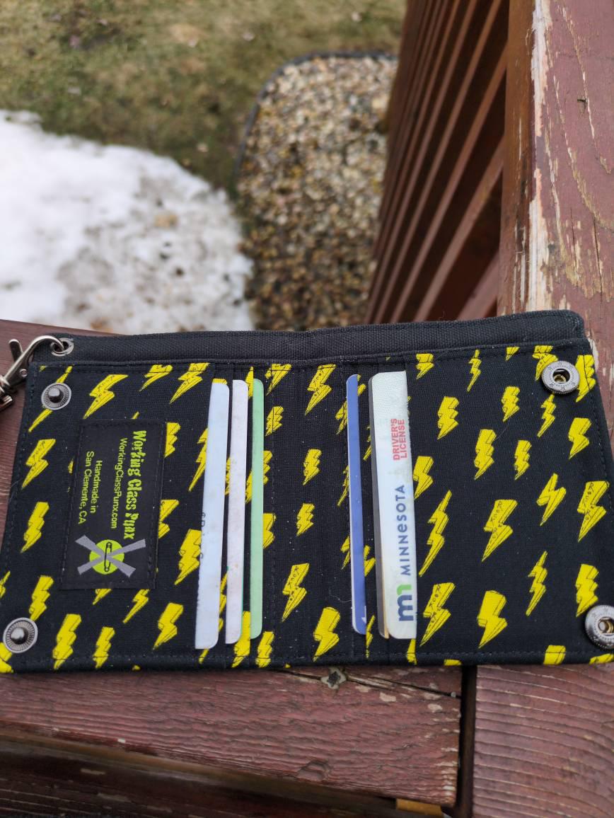 I bought a wallet from working class punx about 5 years ago, I used that thing till It needed to be replaced. I recently went back and bought another because these wallets are that good and the styling is awesome. I have been using the same chain on my wallet since I was 7. I'm happy to use this wallet with this strange heirloom. The wait time and the quality of protection from the way the item was packed is great. The shop never left me wondering what's the status of the shipping either. All aces! I dig this shop. They get me.